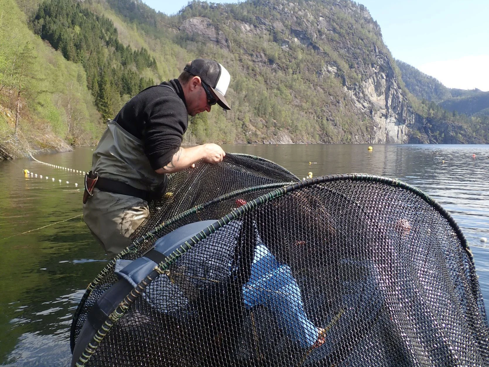På Furnes i Bolstadfjorden satte Yngve Landro ut en storruse for å fange flytende plast fra Bolstadelva i Vossovassdraget. Foto: Tore Wiers.